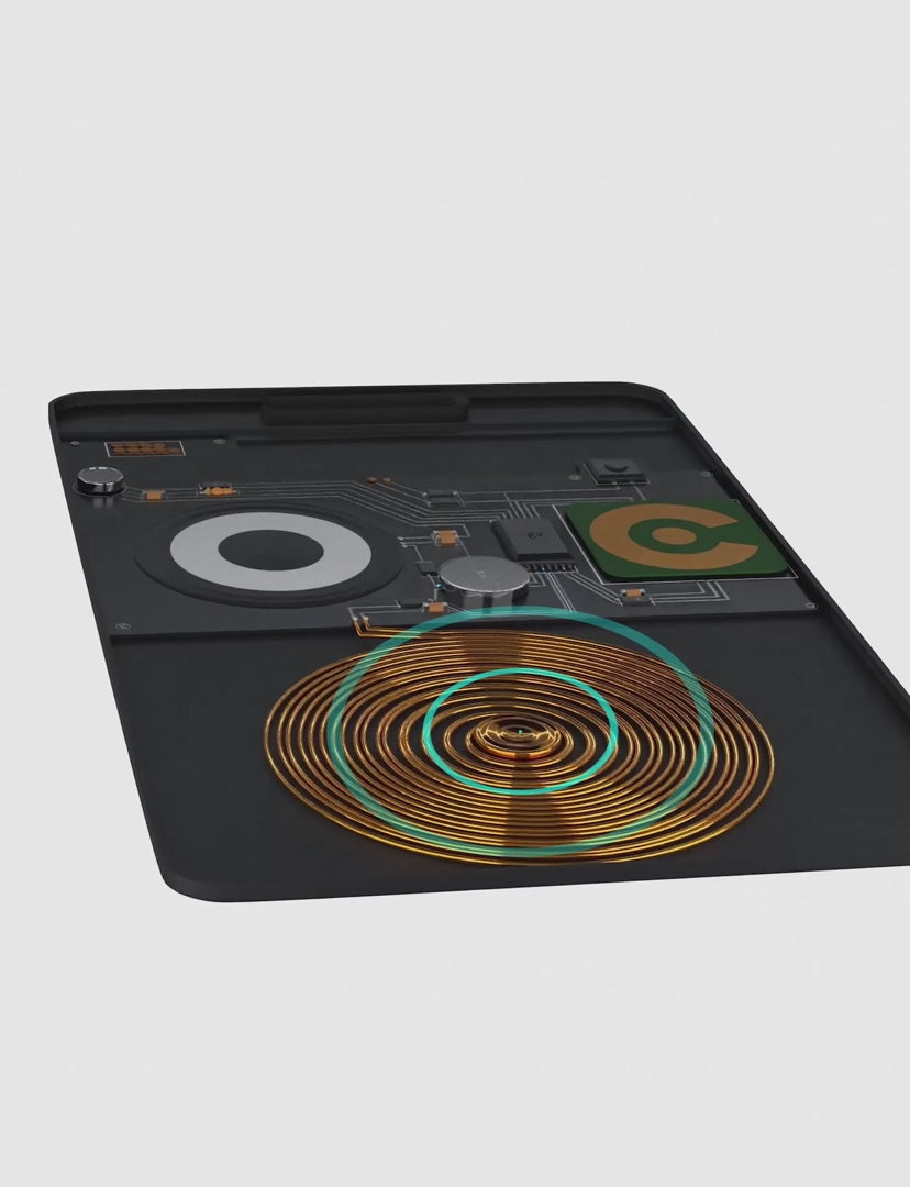 La puissance technologique au format carte de crédit. Équipée d'une électronique de pointe notre carte se recharge sans fil pour ne jamais vous faire défaut. L'innovation, sans l'encombrement.